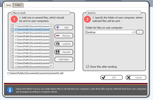 Send files from a teacher computer in a click and collect them back from student computers with automatic arranging by a student computer name.